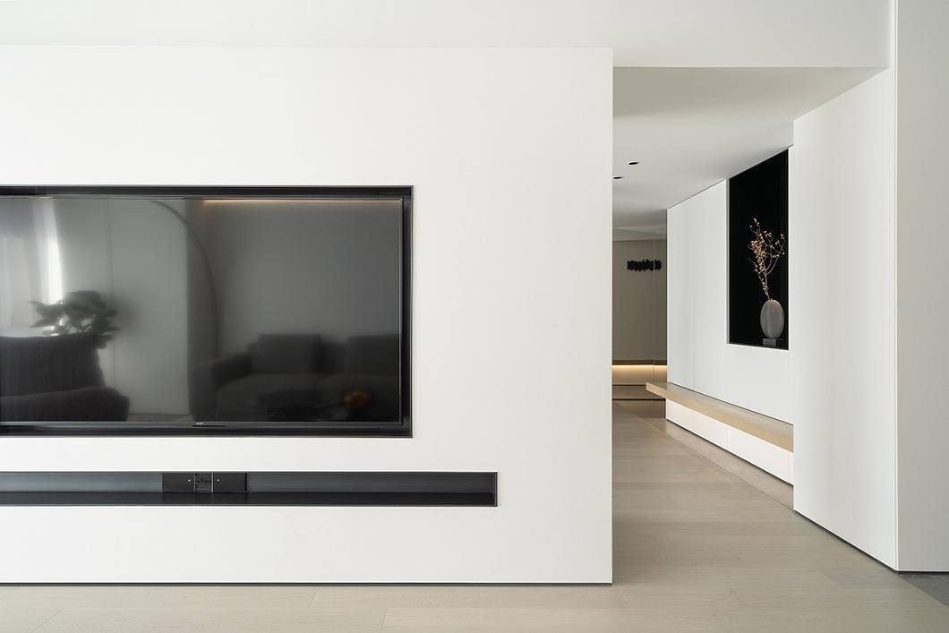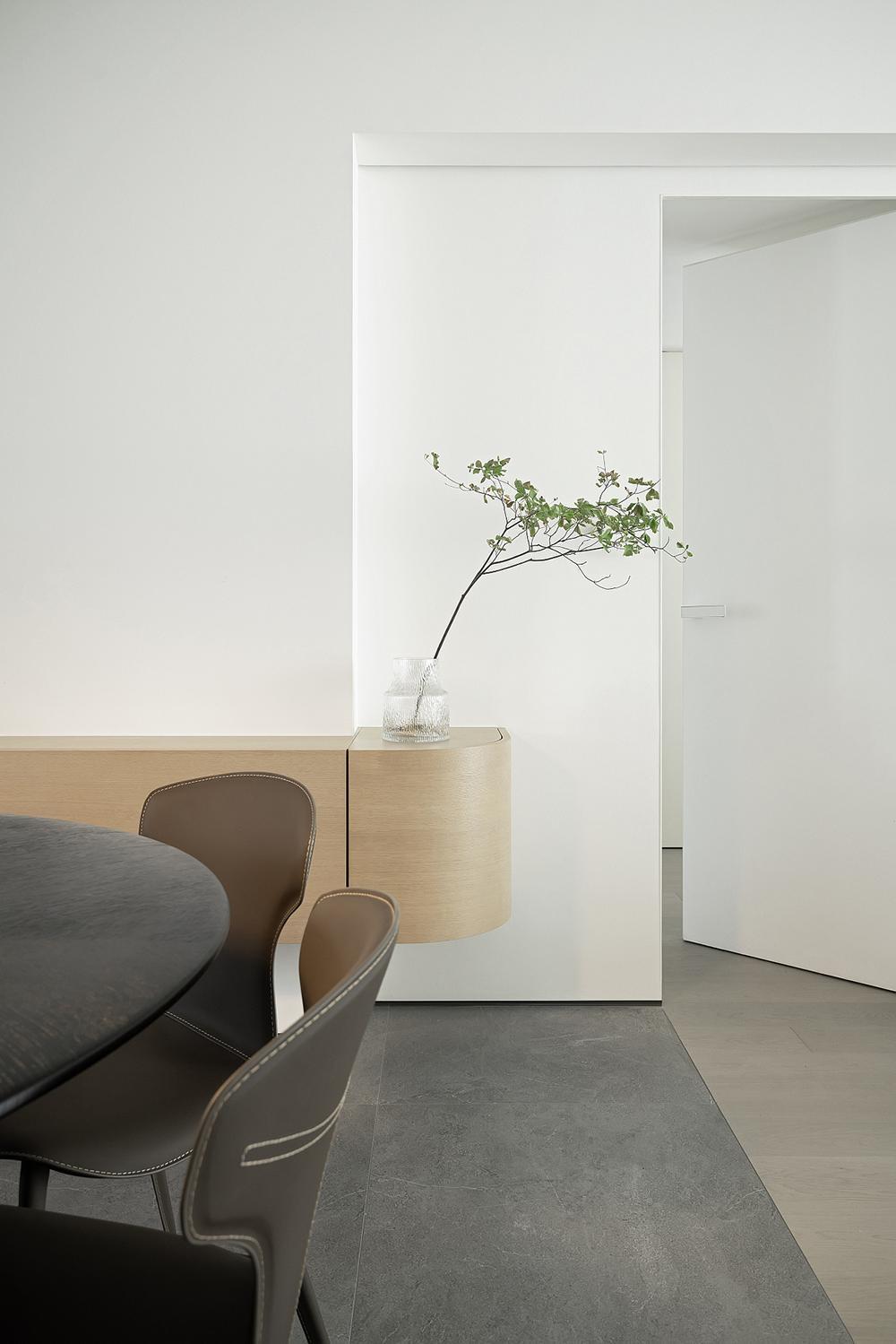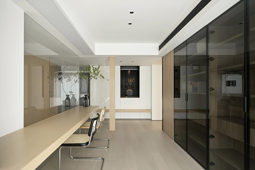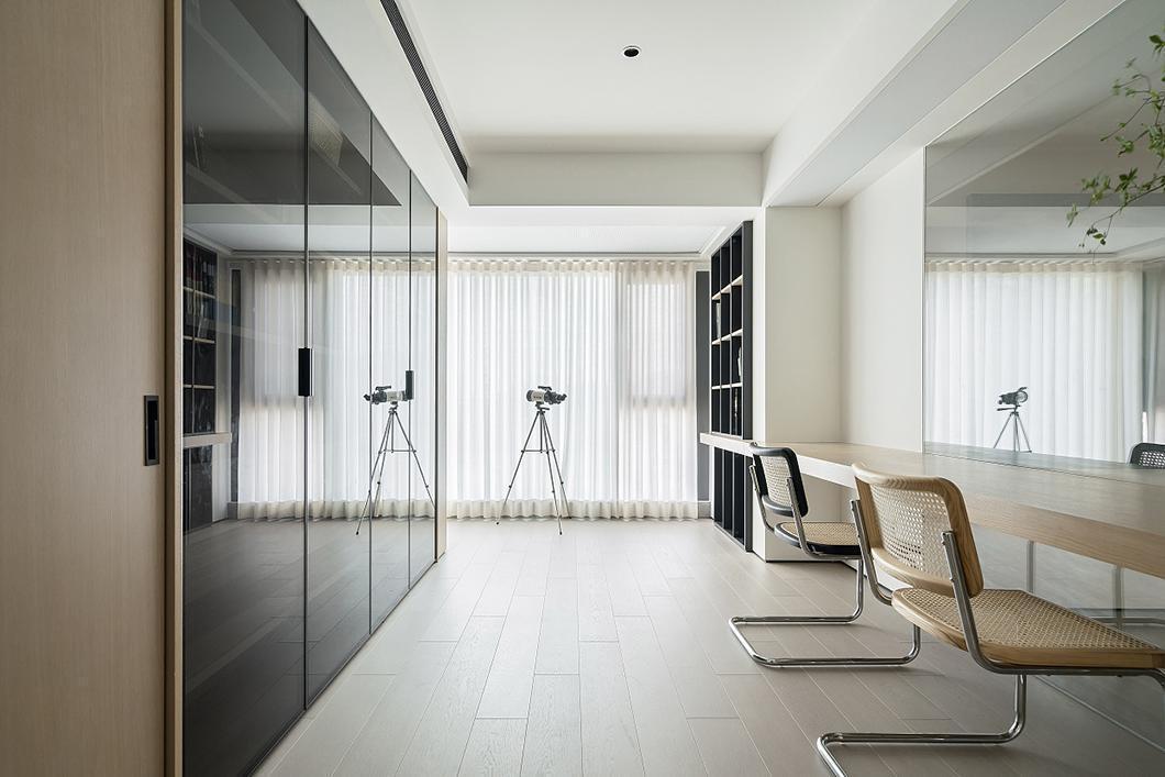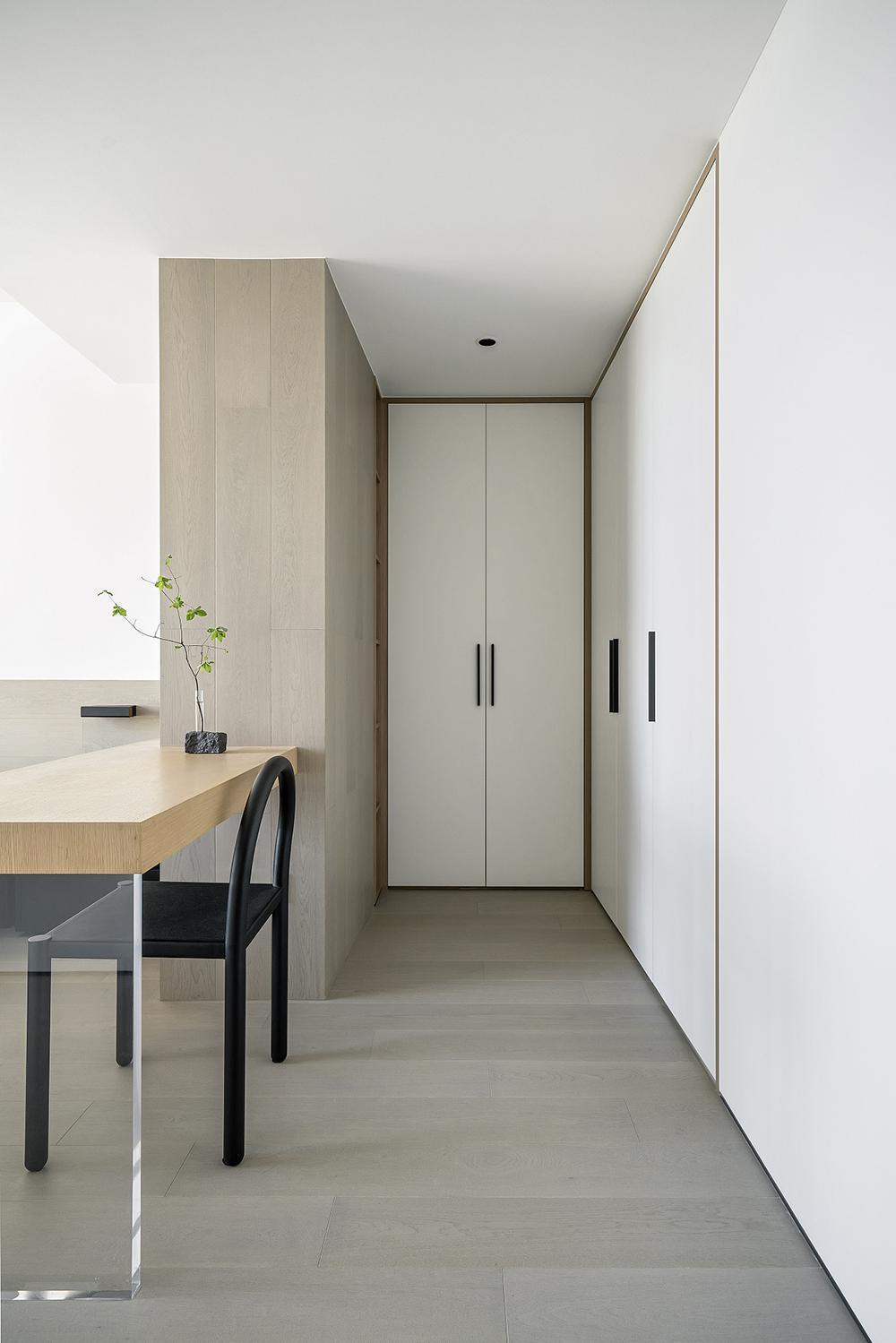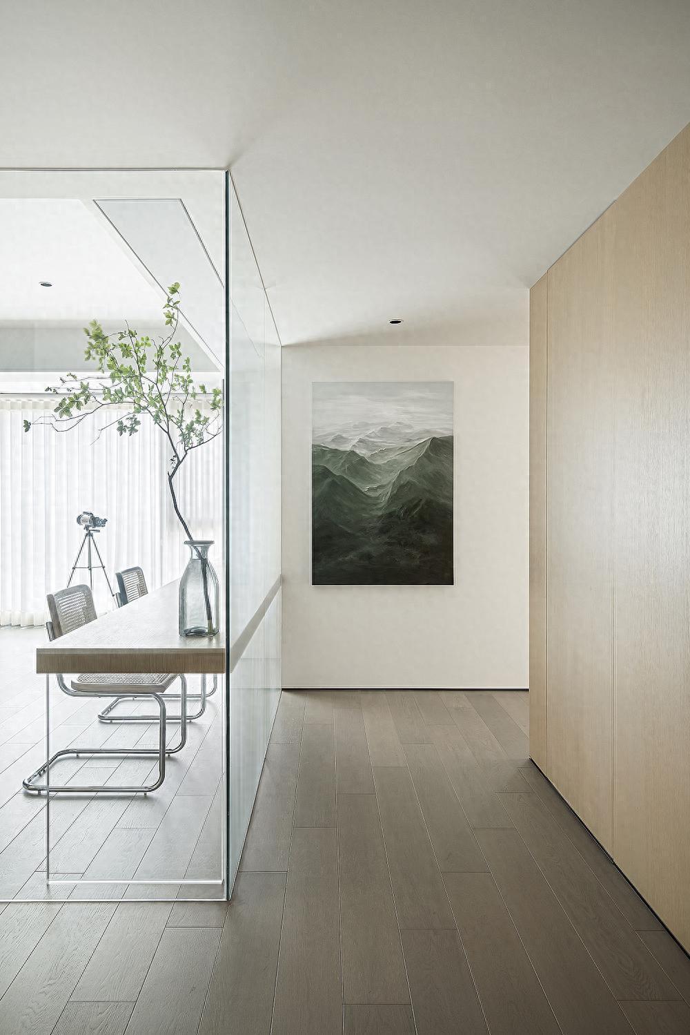 户型融合的同时,做很多的取舍,通过对书房隔墙形式的选择,大片留白空间的造型,在户型立面结构,视觉感受上做减法,更好地提升整体户型的完整性及美观性。